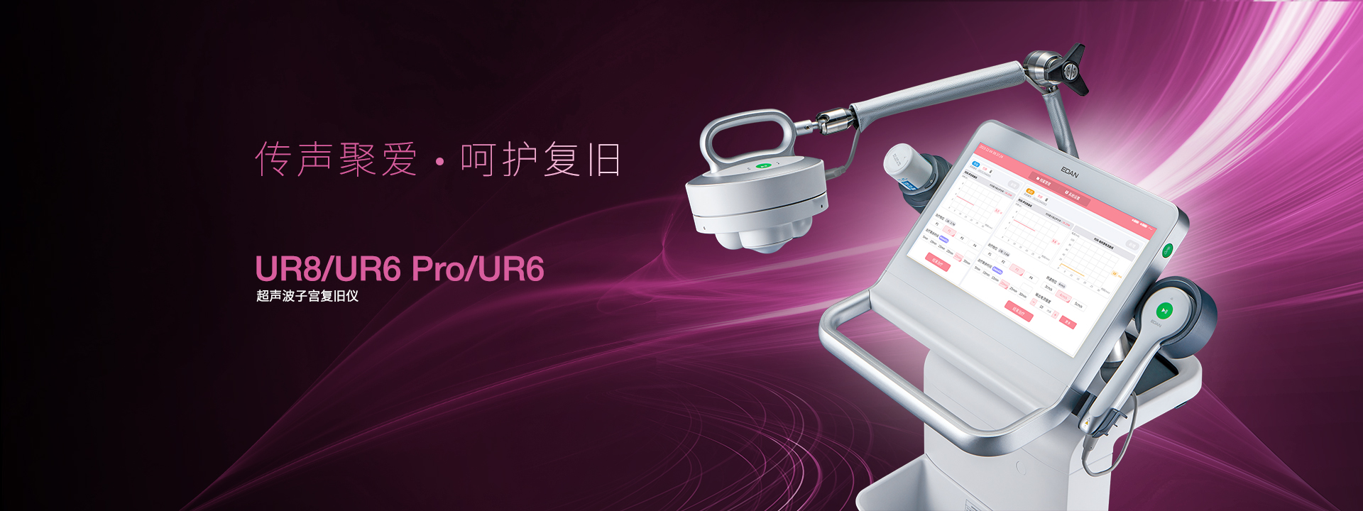 工作原理:UR系列超声波子宫复旧仪,通过低强度超声波刺激子宫平滑肌,引起子宫平滑肌节律性收缩,