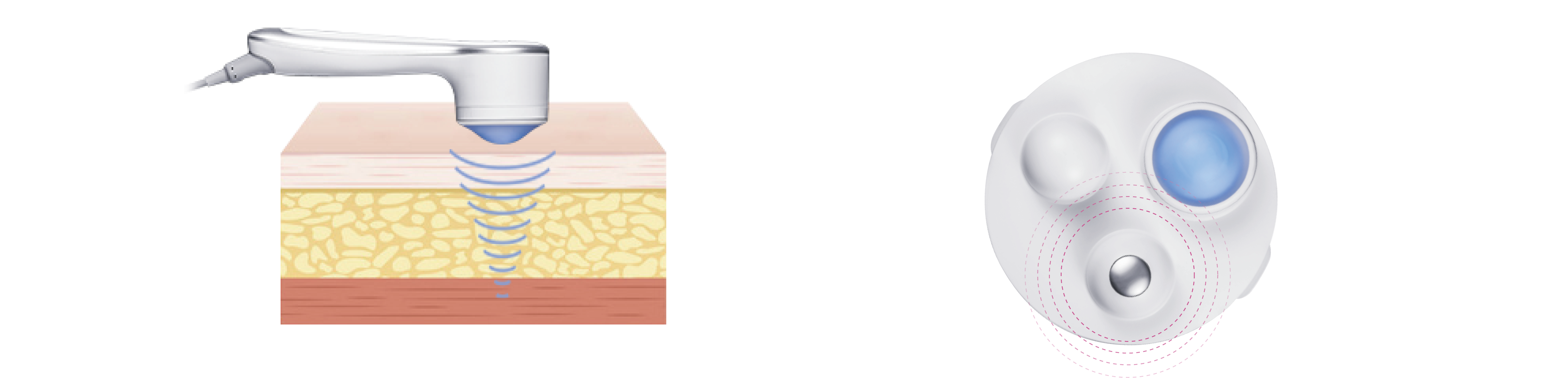 聚焦超声技术:低强度会聚型超声波束,穿透皮肤并将能量集中在40-50mm