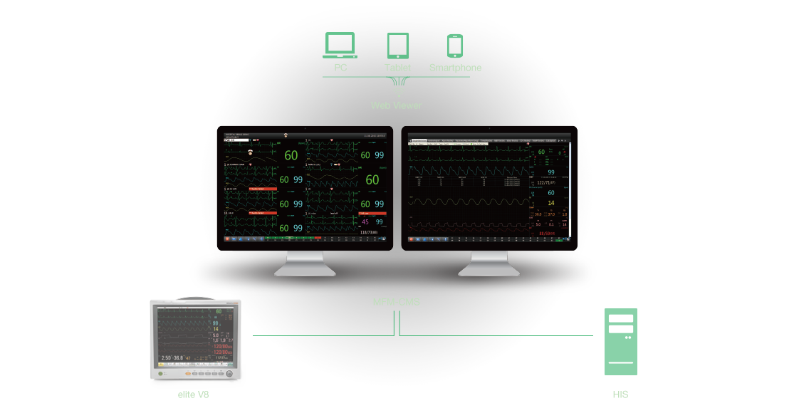 同时还可以通过有线/无线方式接入MFM-CMS中央监护系统。