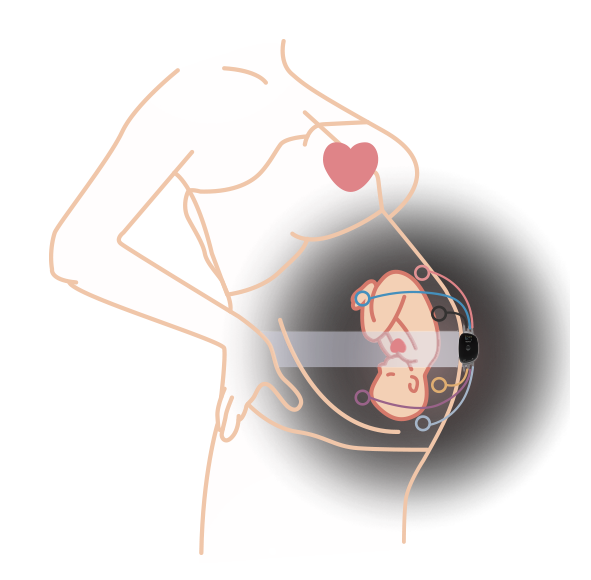 采用体表胎儿心电技术,使用贴片在母亲腹壁获取胎儿心电、母亲心电、